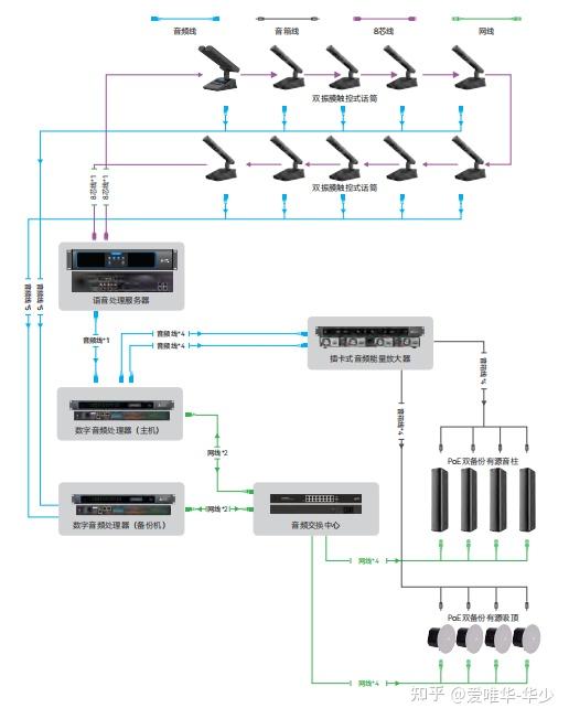 如何保障重要会议正常召开,以下几点需要注意S+音响数字会议系统作为现代会场建设的核心系统,不仅要有清晰的拾音功能和超长的拾音距离,而且系统的稳定运行保障也是非常重要的,尤其是大型的会议上,一旦出现故障,既耽误了会议的进度与决策的及时性,也浪费了参会人员的宝贵时间,更是有损主办单位的声誉和形象。那么我们怎样才能保障会议的正常稳定召开呢?本期小编就带大家一起来了解一下会议系统的备份保障方案!S+会议系统设备中,核心的设备有两个,一个是拾音用的话筒,一个是接收话筒信号用的主机。在有线的会议系统链路中,由于话筒之间是串联在一起的,所以单个话筒的损坏很有可能导致其他的话筒无法使用;又或是一段话筒连接线被老鼠咬坏或者被人不小心拔掉,那么其他的话筒也无法正常使用。而一旦出现这样的情况就需要经过培训的人士进行排查和重接线路,会议进程就会被扰乱。鉴于这种情况的出现,S+音响推出了环形双链路备份方案。环形双链路备份是指除了主通讯线路外,还增加了由末端设备形成的环型链,当主通讯线路故障时,自动转到环型链路上。会议进行中,一旦任意话筒单元或话筒单元A与话筒单元B之间的链路发生故障,则自动转到环型链,不在话筒单元A与B内之间的设备,可以不受任何影响,无延时切换无断音发言,让会议在不被打断的情况下正常进行,系统运行稳定,一定程度降低突发情况对会议造成的干扰。对于会议系统来说,一旦主机故障,整个会议系统就面临瘫痪,所以重要会议场所,常见的就是采用双机热备(增加一台备用会议系统主机,一旦主会议主机故障,备用主机自动切换开始工作)的方式进行保障,但是采用双机热备的成本较高,对于预算有限的单位来说就很难办了,所以针对此种情况,S+音响推出了 数模备份方案 。数模备份是指系统支持数字信号与模拟信号连接,将幻象供电麦克风和手拉手会议系统无缝融合起来。模拟功能通过 音频线 连接音频处理器进行扩声,数字功能是通过 网线 连接 POE 交换机,主机的扩展口(EXT)连接到 POE 交换机,通过主机进行混音扩声。会议过程中,主机与单元之间通信正常,优先进入数字模式。当主机网线被误拔、网络出现故障、主机关机等情况,自动切换到模拟线路功能,整个切换过程即刻触发,正在进行的发言不会断音、掉字,会议不受影响如常开展。